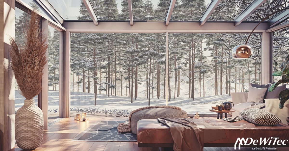 Damit ein Wintergarten auch bei Schnee und Frost komfortabel bleibt, spielen Material und